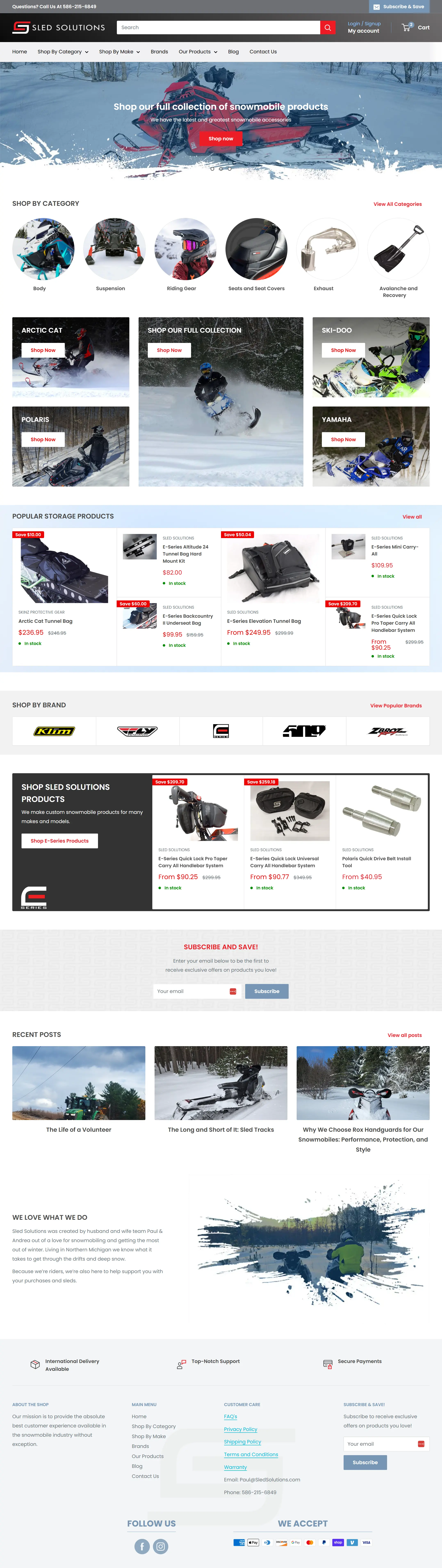 Sled Solutions sells thousands of aftermarket snowmobile parts, but their BigCommerce site had become too difficult to manage. We migrated everything to Shopify, streamlined operations, and built tools to handle complexity with ease.